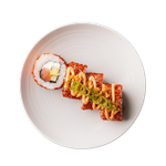 Surimi and avocado roll with mayonnaise, teriyaki sauce & crispy onion.