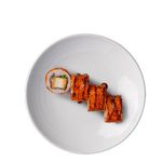 Fresh salmon roll wrapped in nori leaf.