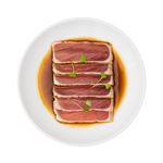 6 slices of tuna and ponzu sauce, sealed with light fire