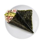 Surimi wrapped in a rice nori cone, avocado, mayonnaise and roasted sesame grains.